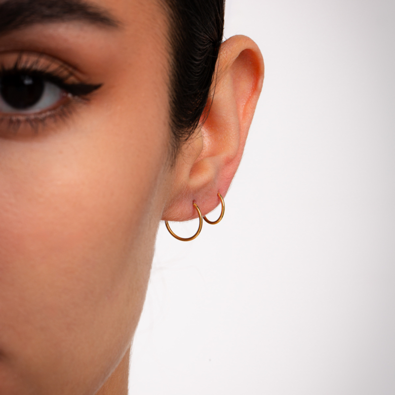 گوشواره طلا حلقه ای کوچک، ساخته شده از طلا 18 عیار و کاملا دست ساز می باشد.